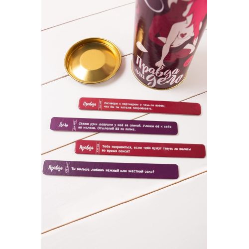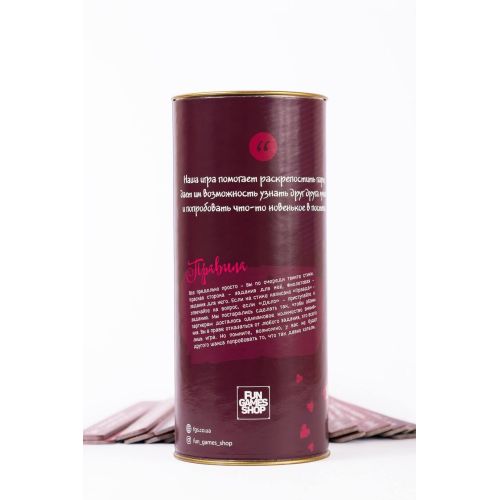Коротко про правила: Все гранично просто-ви по черзі тягніть стіки. Червона сторона-завдання для неї, синя - завдання для нього. Якщо на стіку написано» Правда « - відповідайте на питання, якщо» справа " - приступайте до завдання. Ми постаралися зробити так, щоб обом партнерам дісталася однакова кількість уваги. Ви в праві відмовитися від будь-якого завдання, це всього лише гра. Але пам'ятайте, можливо, у вас не буде іншого шансу спробувати те, що так давно хотіли.