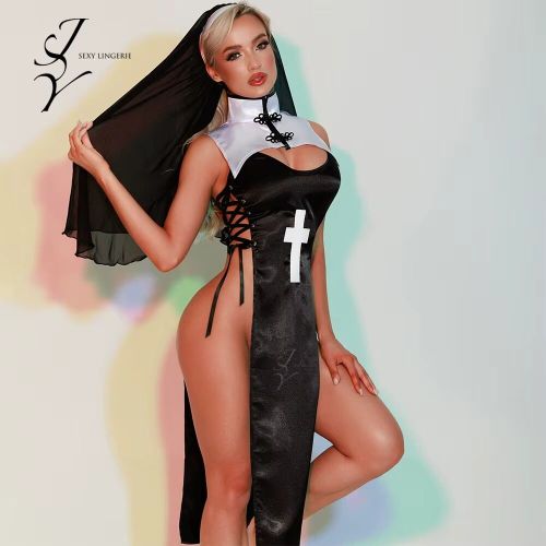 Еротичний костюм монашки для рольових ігор чорно-білого кольору JSY модель 5950 розмір One Size