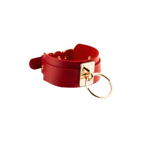 Еротичний червоний нашийник для ігор БДСМ із золотистим кільцем Kinky Diva
