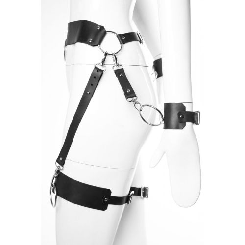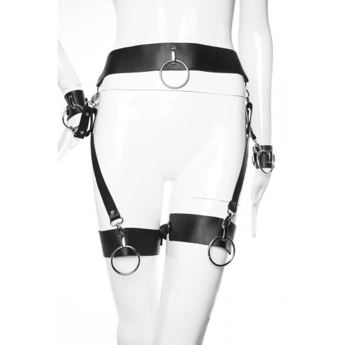 Гартери з кайданами з фіксацією рук до поясу шкіряні чорні Loveshop g 38.1 розмір 40-42
