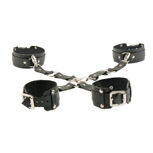 Бондаж виконаний у вигляді наручників та поножів, які можуть з'єднуватися та утворювати перехресний бондаж.