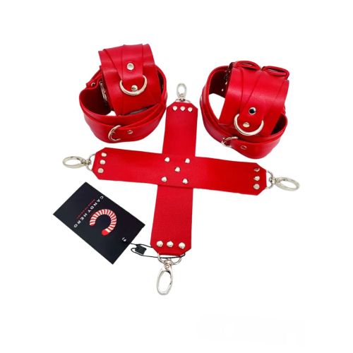 Хрестовина для фіксації рук та ніг ручної роботи зі штучної шкіри червоного кольору DS Fetish модель Fet 10 Red