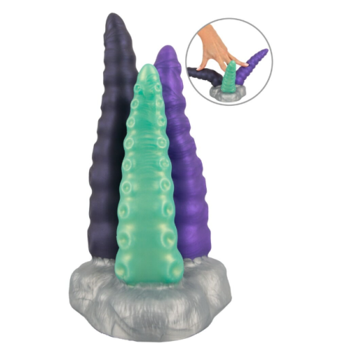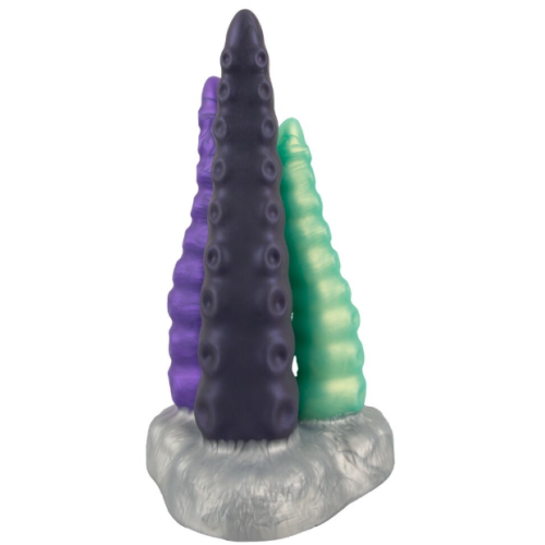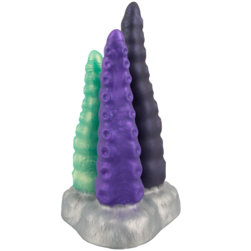Фалоімітатор на підставці з 3 щупальцями фіолетового зеленого та бузкового кольору Beasty Cocks Triple Tentacle