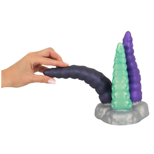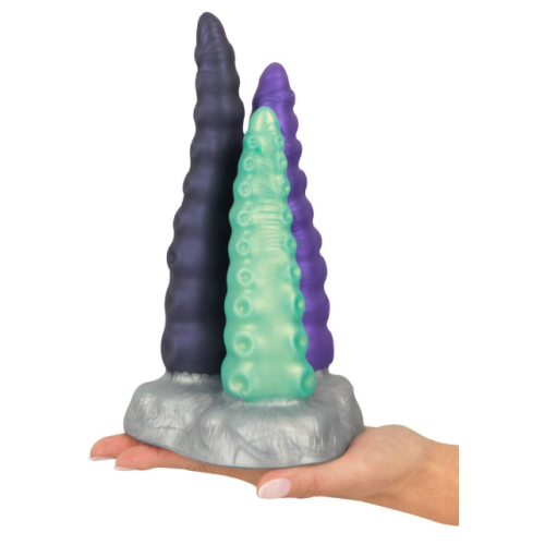 Фалоімітатор з 3 частин у фантазійному образі щупальця Гнучкі фалоімітатори - індивідуально рухливі Кожен фалоімітатор має високо стимулюючу структуру Кожен фалоімітатор з чутливим кінчиком Чутливий рідкий силікон М'яка поверхня, що нагадує шкіру У декоративній двосторонній упаковці! Triple Tentacle від Beasty Cocks by You2Toys поєднує в собі 3 фалоімітатори в одній іграшці. Тріо фалоімітаторів - це не просто збуджуюча містична приманка для очей з детально опрацьованим дизайном щупалець. Кожна з щупалець - це ще й глибока насолода з його захоплюючими стимулюючими структурами! Зі щупальцями можна грати окремо або разом. Вони приємно пружні і в той же час чудово гнучкі, і їх можна рухати окремо, щоб отримати різнобічне задоволення - поодинці або вдвох. Фалоімітатор із 3 частин виготовлений з м'якого, тактильно приємного рідкого силікону. Кожен фалоімітатор із щупальцями має вузький звужений кінчик для легкого введення. Завдяки шовковистій поверхні ці три стимулятори ковзають в інтимні глибини як за помахом чарівної палички. Загальна довжина 22 см, довжина вставки 18,5 см/16,5 см/14,5 см, не більше 4,6 см кожна. Вага 842 р. Силікон (рідкий силікон), поліуретан