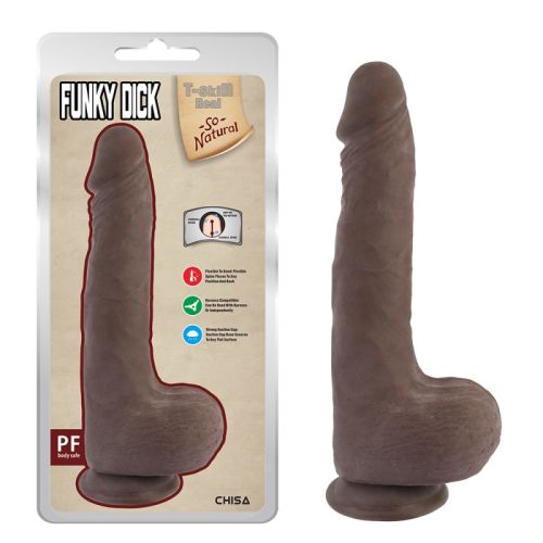 Подаруйте собі відчуття неперевершеної близькості з неповторним вібратором Chisa Funky Dick. Цей реалістичний фалоімітатор виконаний з м'якого термопластичного еластомера коричневого кольору, який приємно лежить у руці і імітує текстуру людської шкіри. Завдяки присосці, ви можете використовувати його без рук або закріпити на будь-якій гладкій поверхні.Основні характеристики