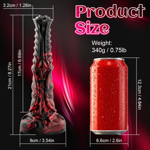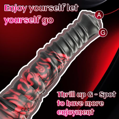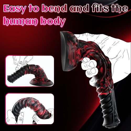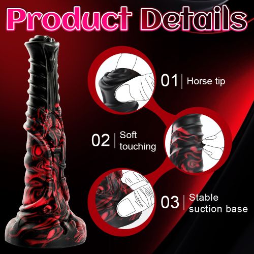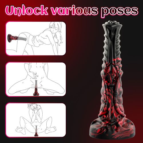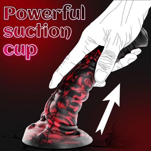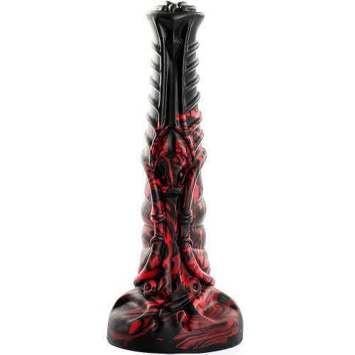 Фантазійний фалоімітатор із вираженим рельєфом на присосці червоно-чорний XISE “Fantasy monster penis”