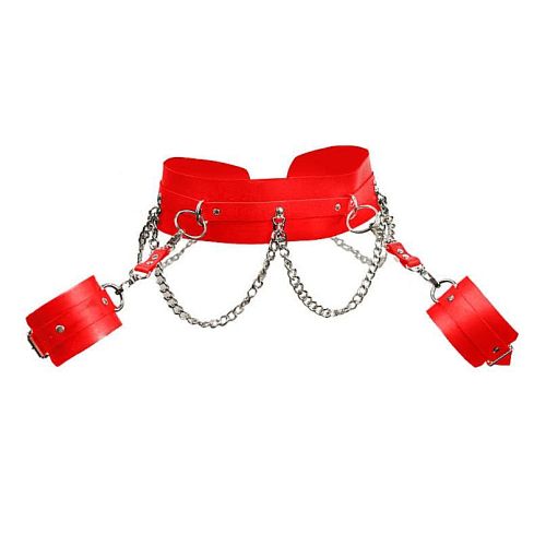 Пояс із наручниками для фіксації рук БДСМ червоного кольору Candy Hero модель Fet 28