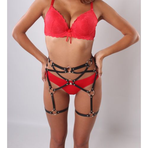 Гартери (портупея для стегон) ручної роботи із натуральної шкіри чорного кольору Love Style модель G 71