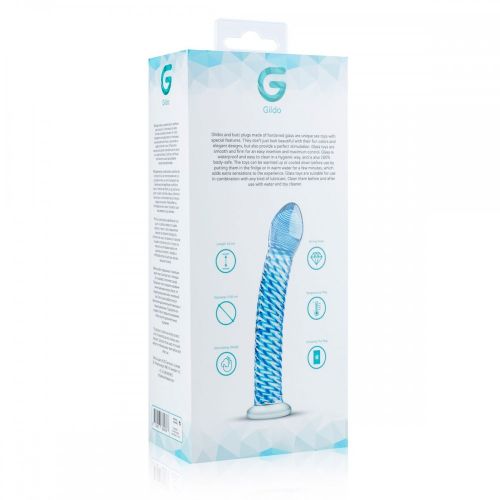 Фалоімітатор скляний, оснащений випуклими ребрами блакитного кольору Gildo No 05