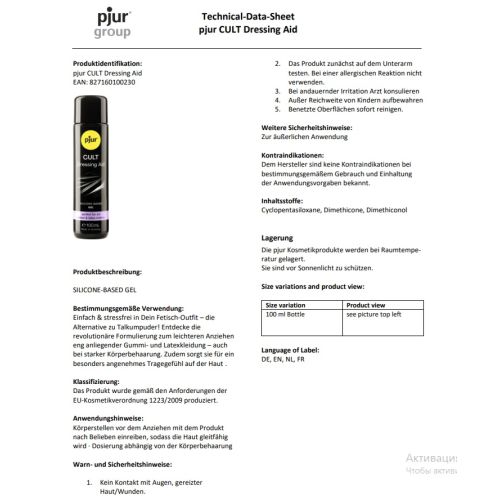 Даний препарат розроблений спеціально для любителів фетишу і допомагає легко надягати чарівні аксесуари з латексу, легко ковзаючи по його гладкій поверхні. Навіть якщо у вас багато волосся на тілі, Pjur Cult значно полегшить процес перевдягання у фетиш-аксесуари. Однак революційна формула препарату дбає не тільки про вашу зручність, а й про збереження, міцність та еластичність матеріалів.