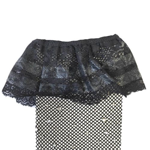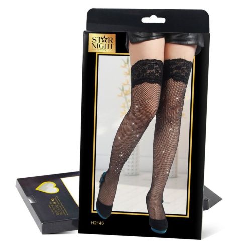 Панчохи в сітку зі стразами та мереживним верхом на силіконовій стрічці чорного кольору Star Night