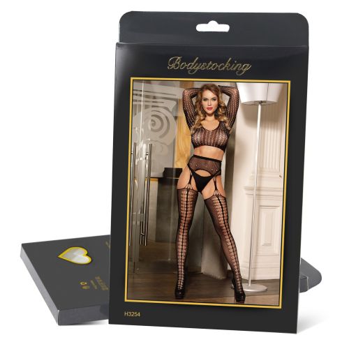 Комплект у сіточку топ з довгим рукавом та колготки з імітацією панчох чорного кольору Star Night