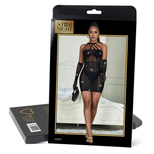Сукня у сіточку з прикрасами у вигляді страз чорного кольору Star Night розміри XS-M