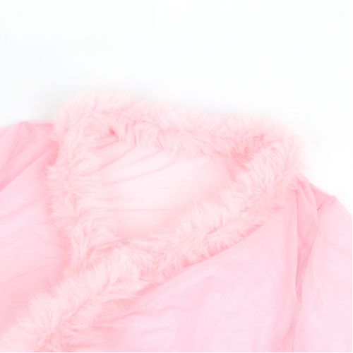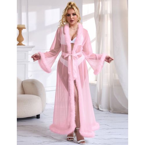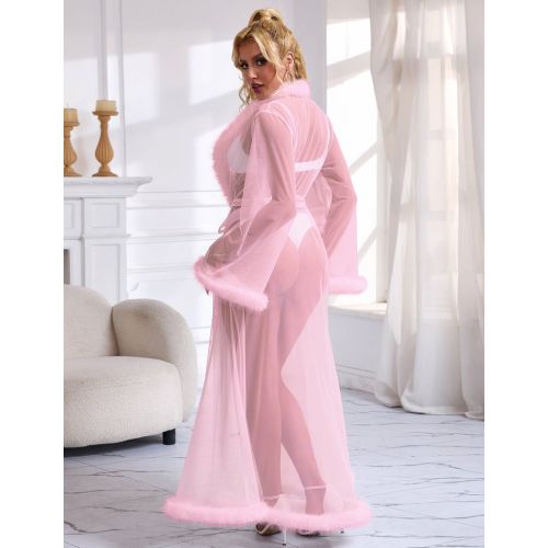 Халатик напівпрозорий Star Night з імітацією хутра та поясом, рожевий, XL-2XL