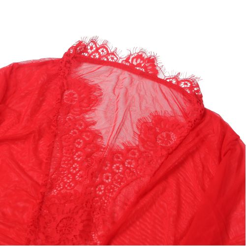 Халатик Star Night з поясом та мереживом, червоний, XS-S