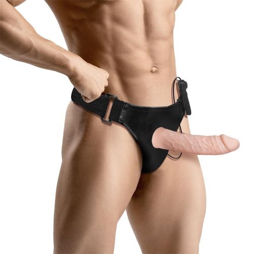 Ременний вібрострапон реалістичний порожнистий чоловічий з дистанційним керуванням тілесного кольору Cottelli Collection Harness Collection