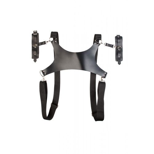 Система фіксації для тіла БДСМ з наручниками та поніжками штучна шкіра чорний Candy Hero модель HOLD2