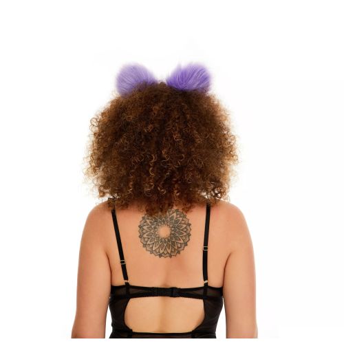 Хутряні вушка кішечки з бантиком для рольових ігор Фіолетові з білим Okova