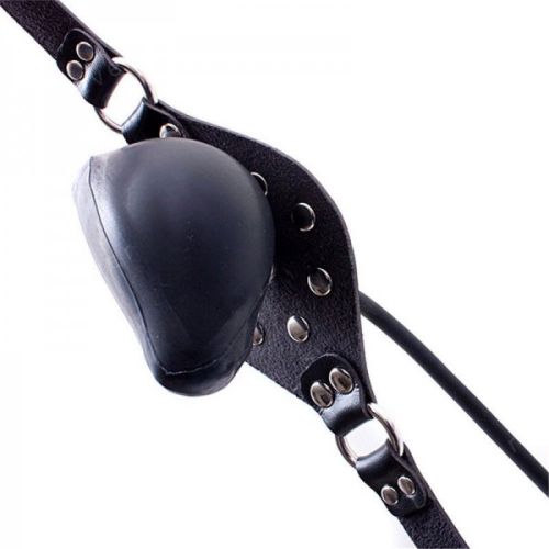 Шкіряний кляп у рот з підкачкою для БДСМ чорний