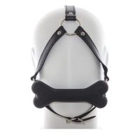 Шкіряний чорний кляп для рота з м'якою кісточкою