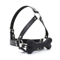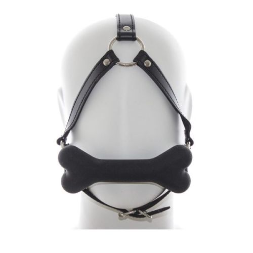Кляп у рот чорний на ременях з кісточкою для БДСМ