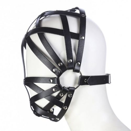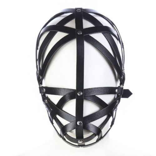 Ремінна маска на обличчя зі шкіри чорна для БДСМ