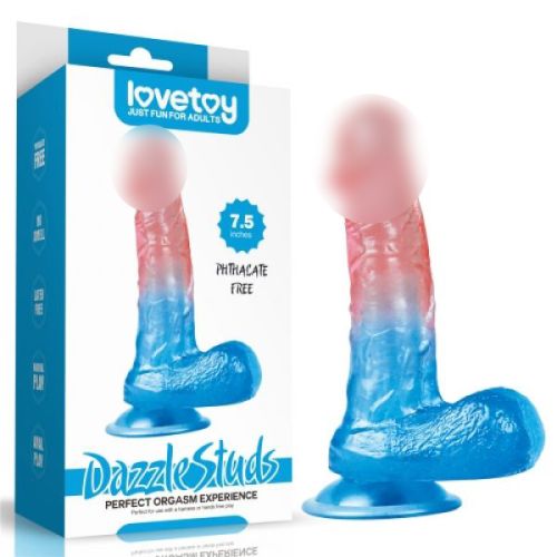 Фалоімітатор 14/4 см реалістичний на присосці Lovetoy в яскравому синьо-рожевому кольорі