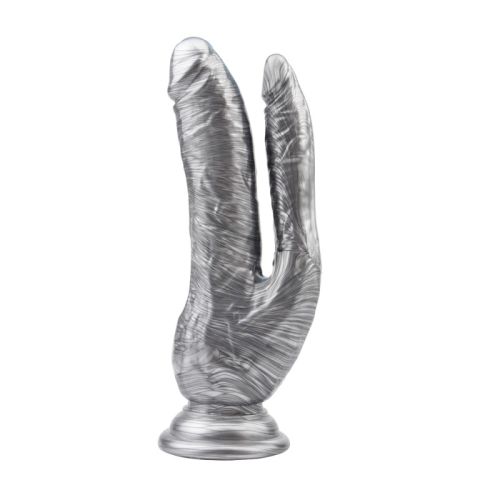 Двосторонній фалоімітатор реалістичний на присосці сріблястого кольору Chisa Ivana Havesex