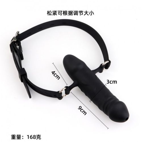 Кляп для рота з двостороннім фалоімітатором силіконовим в рот чорний bdsm4u