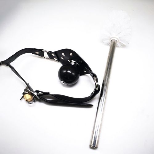 Двосторонній кляп кулька в рот БДСМ з туалетною щіткою БДСМ чорного кольору Bdsm4u