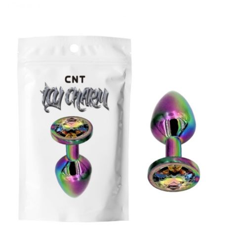 Анальна пробка з медичної сталі веселкова з веселковим камінцем Cnt Aurora Gem