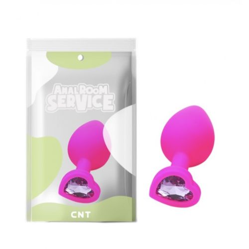 Анальна пробка силіконова рожевого кольору з фіолетовим камінцем у формі серця Cnt Love Diamond розмір Medium