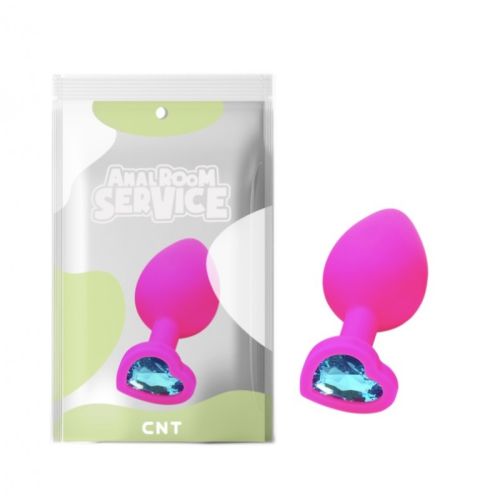 Анальна пробка силіконова рожевого кольору з блакитним камінцем у формі серця Cnt Love Diamond розмір Medium