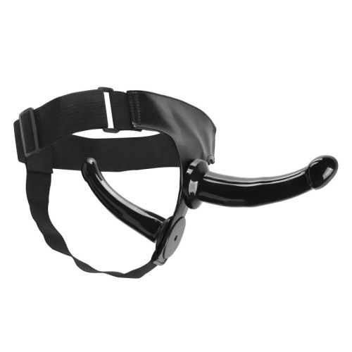 Ременний подвійний страпон гелевий чорного кольору Vscnovelty