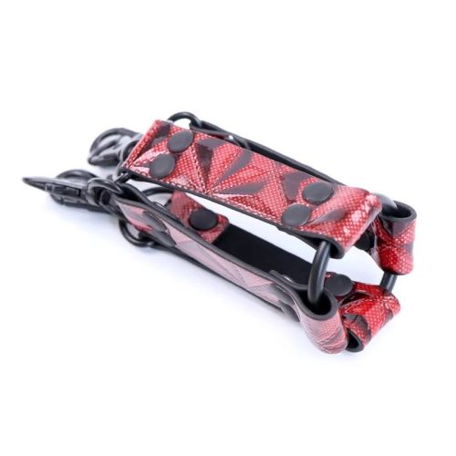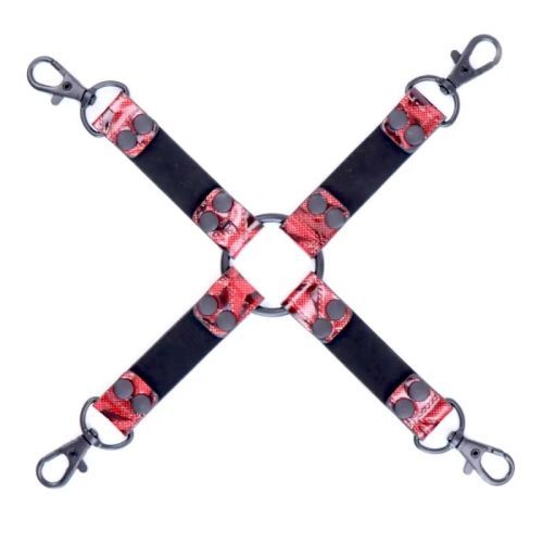 Конектор для фіксації з чотирма карабінами та кільцем БДСМ червоного кольору
