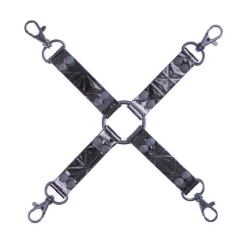 Конектор для фіксації з чотирма карабінами та кільцем БДСМ чорного кольору