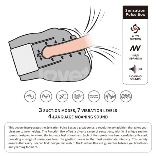 Цей унікальний мастурбатор від бренду Lovetoy надасть вам максимальне задоволення завдяки реалістичному матеріалу, анатомічно точній формі та безлічі різноманітних функцій. М'який термопластичний еластомер (TPE) забезпечує неймовірно натуральні відчуття. Додайте до цього різні режими вібрації та реалістичні звуки – і ви отримаєте одне з найінноваційніших рішень на ринку.