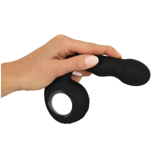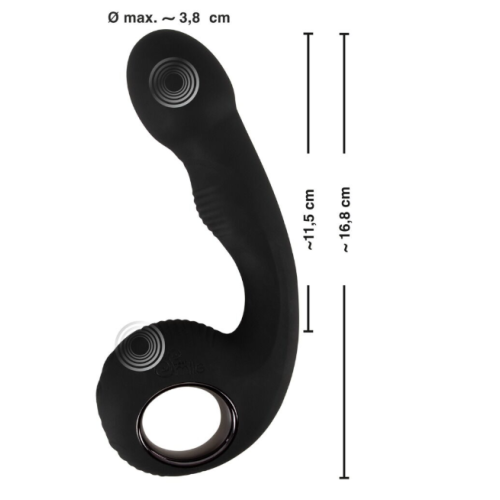 Вібратор Hotspot з 2 моторчиками Ідеально вигнутий для G-зони та простати Також стимулює клітор та анус 2 x 10 режимів вібрації Відмінна масажна головка з точками задоволення Стимулюючі жолобки Шовковисто-м'яка поверхня Водонепроникний Простий у використанні Перезаряжа всередині та зовні! Ідеально вигнутий вібратор для точки G і P від Black Velvets з виразною вібромасажною головкою. Для точної стимуляції вагінальної G-точки та/або анальної P-точки (простати). Також інтенсивно вібрує внутрішня ручка, щоб одночасно побалувати клітор чи анус. Гребені на головці та внутрішній ручці посилюють стимуляцію. Завдяки м'якому шовковистому дотику міцний силіконовий вібратор легко вводиться і ковзає як би сам по собі. Два потужні і тихі моторчики забезпечують 10 інтенсивних режимів вібрації в голівці та на ручці. Вони регулюються окремо натисканням кнопки на практичній ручці-кільці. Навіть у ванній та душі, адже вібратор G&P-Spot водонепроникний. Нековзна кільце також забезпечує безпечне анальне використання без зісковзування. Перезаряджається - USB-кабель для заряджання входить у комплект. Загальна довжина 16,8 см, довжина запровадження 11,5 см, Ø 2,3-3,8 см. Вага 127 г. Силікон, поліуретан, ABS.