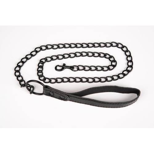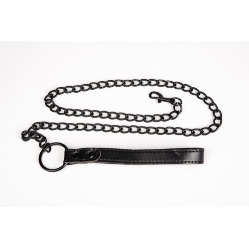 Повідець для нашийника БДСМ на ланцюжку з чорною шкіряною ручкою JSY