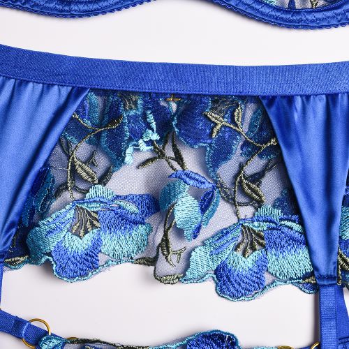 Елегантний жіночий комплект білизни із вишивкою синього кольору JSY розмір L/XL