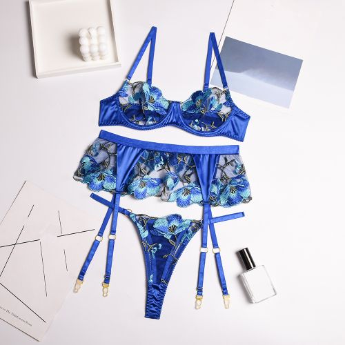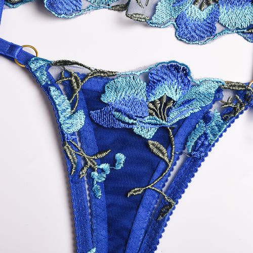 Елегантний жіночий комплект білизни із вишивкою синього кольору JSY розмір S/M