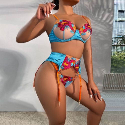 Еротичний комплект жіночої білизни з Підтяжками для панчох червоно блакитного кольору Jsy Debra розмір L