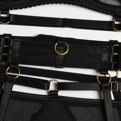 Сексуальний жіночий комплект із поясом та гумками чорного кольору JSY Nudelia розмір S/M