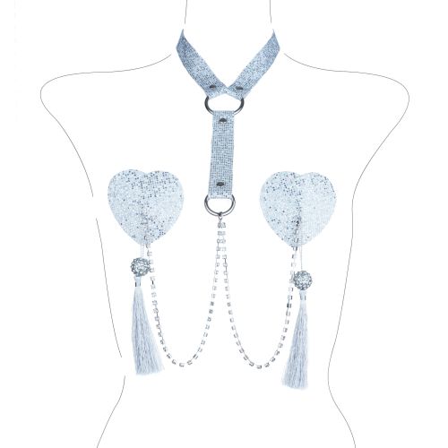Еротичний аксесуар для створення сексуального образу - пестики у вигляді серця ідеально лягають на сосок. Ексклюзивний дизайн завершує сполучний срібний ланцюжок з чокером, що додає образу зухвалої відвертості. Цей шикарний варіант прикраси для оголеного тіла, а також можна поєднувати з нижньою білизною, прозорою боді, сорочкою.