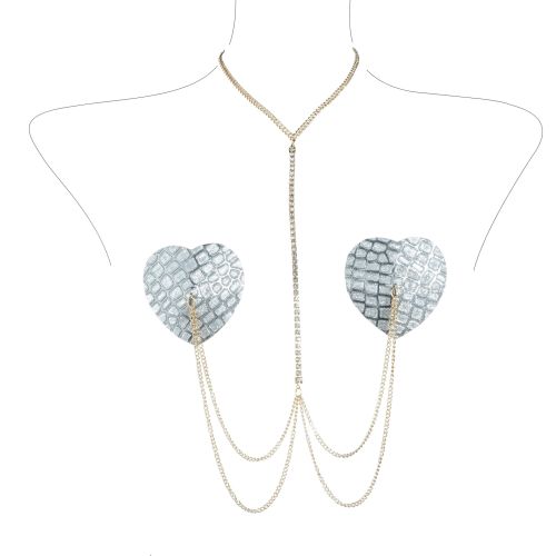 Сексуальні пестиси серця з ланцюжками та стразами срібного кольору JSY