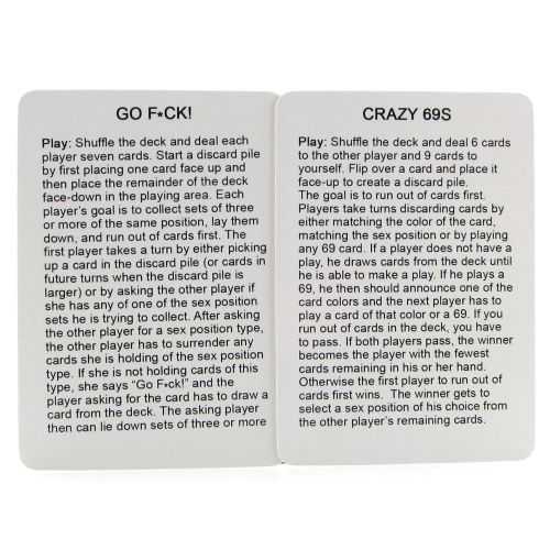 Замінюючи масті на сексуальні пози та дії, ваша гра Crazy 69's, Sex Snap та Go F*ck залишить і переможця, і того, хто програв дуже щасливими.