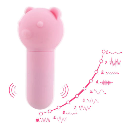 Маленький та компактний вібромасажер, який поміститься у будь-яку косметичку! Потужний міні вібратор можна використовувати не тільки для клітора, але і для інших ерогенних зон. Інтенсивна стимуляція на 10 різних режимах не змусить чекати на оргазм! Вібромасажер виконаний із гіпоалергенного медичного силікону ніжного, рожевого кольору. Дуже милий та забавний у формі маленького ведмедика, має потужний мотор та 10 різних режимів вібрації. Перезаряджається через зарядку USB яка йде в комплекті. Для увімкнення необхідно затиснути кнопку на 3 секунди і ви відразу відчуєте інтенсивну вібрацію, для перемикання клацніть на цю кнопку, для вимикання затисніть кнопку на 3 секунди. Простий і зрозумілий у використанні та догляді. Перед та після використання радимо промити теплою водою з м'яким милом або обробити секс-іграшку спеціальним засобом для інтимних аксесуарів. Не занурюйте іграшку у воду на тривалий період, використовуйте лише з мастилом на водній основі. Матеріал: силікон Колір: рожевий Зарядка: USB Кількість режимів: 10 Довжина 90 мм Діаметр 23 мм Діаметр головки 40 мм Упаковка: коробка