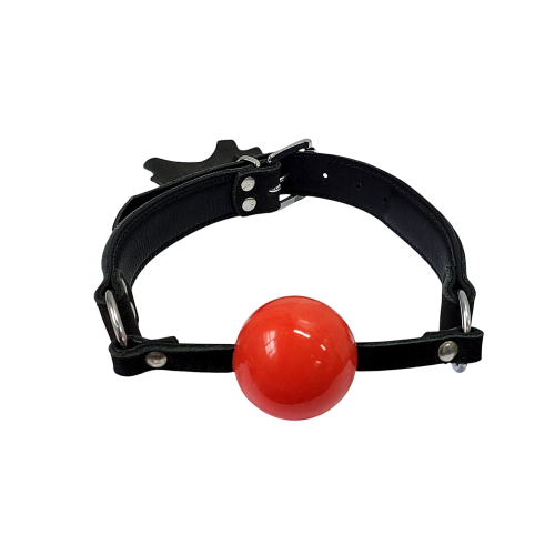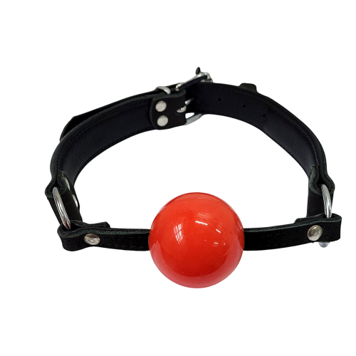 Кляп у рот із силіконовою червоною кулькою та шкіряним чорним ремінцем DS Fetish