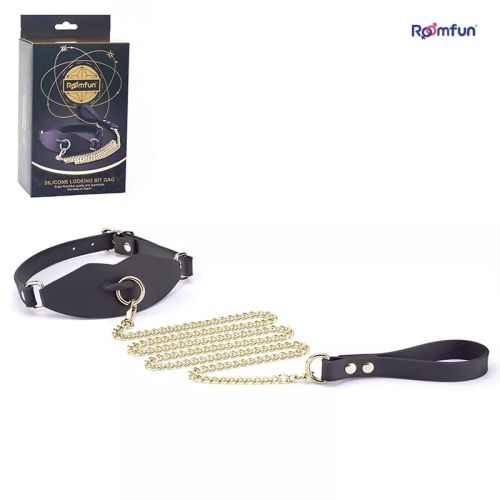 Кляп силіконовий з повідцем на ланцюжку Roomfun чорний