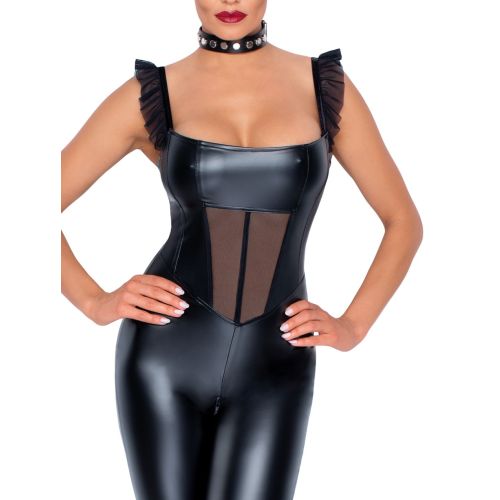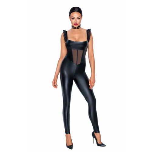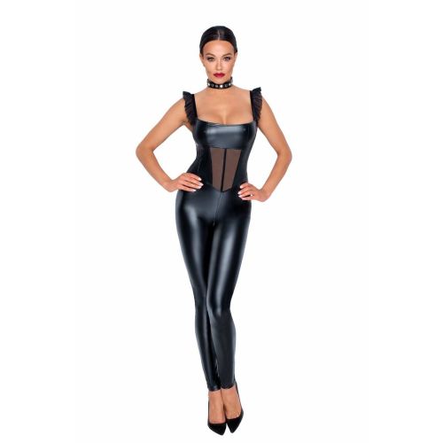 Комбінезон із вінілу зі вставкою із сіточки Noir Handmade F256 чорний, M